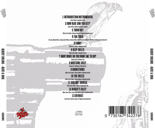 The Master of the Telecaster. The Razor Blade. The Iceman. Albert Collins has been called many names, but nothing comes close to experiencing this legendary blues guitarist first hand. Crammed with those sharp, striking solos that hit like an ice pick through your soul, "Alive and Cool" takes you back in time, capturing the true essence of Collins' unparalleled talent as a blues performer and highlighting his unwavering commitment to delivering uplifting and powerful performances through his music. Featuring a mix of original compositions and covers infused with his distinctive touch, the interplay between Collins and his band on this album is palpable, locking into mesmerizing grooves and feeding off each other's energy to rampant applause. From the foot-stomping energy of up-tempo blues to the soul-stirring beauty of slow ballads, every track showcases Collins' versatility as a musician and his ability to captivate an audience and capture the true essence of the blues.