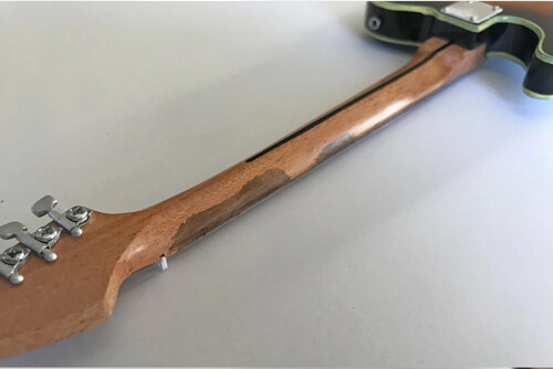 Just like the real guitar, this miniature model has ALL the vintage marks from the neck, fretboard, and body!