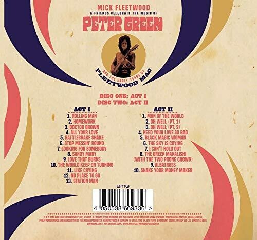 In February 2020—five months before Green passed away—Mick Fleetwood brought together an array of stars to pay loving tribute to Peter Green, whom Mick called his "greatest mentor." This heartfelt look back to the bluesy formative days of Fleetwood Mac includes "Doctor Brown" feat. Billy Gibbons, "All Your Love" feat. John Mayall, "Station Man" feat. Pete Townshend, "Oh Well Pt. 1" feat. Billy Gibbons & Steven Tyler, "Oh Well Pt. 2" feat. David Gilmour, "The Green Manalishi" feat. Billy Gibbons & Kirk Hammett, "Like Crying" feat. Noel Gallagher, "Looking for Somebody" feat. Christine McVie, "Man of the World" feat. Neill Finn, "The Sky Is Crying" feat. Jeremy Spencer and more. Produced by Glyn Johns, this unforgettable Peter Green celebration arrives now on 2 CDs (with 20-page booklet), 2 CDs with Blu-Ray (with a 20-page media book), quadruple gatefold vinyl or as a limited-edition set: the CDs, the LPs, the Blu-Ray and a 44-page book pack! BMG.