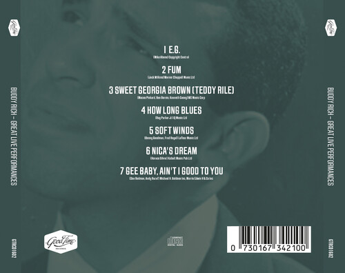 Buddy Rich's commanding presence behind the drum kit is legendary, his reputation as a bandleader, unmatched. With this collection of live recordings, get ready to be swept away by the brilliance, skill, and impeccable showmanship of a true maestro. Featuring collaborations with Lionel Hampton, Oscar Peterson, Count Basie and Horace Silver along with a classic Louis Armstrong and Ella Fitzgerald duet, this remarkable collection of tracks captures the raw power and virtuosity of one of the greatest jazz musicians in history, bringing you front and center to witness the sheer mastery and improvisational genius of Buddy Rich. His thunderous rolls, lightning-fast fills and infectious grooves combine to showcase his unparalleled ability to drive his band to new heights, making each performance an unforgettable spectacle to behold.