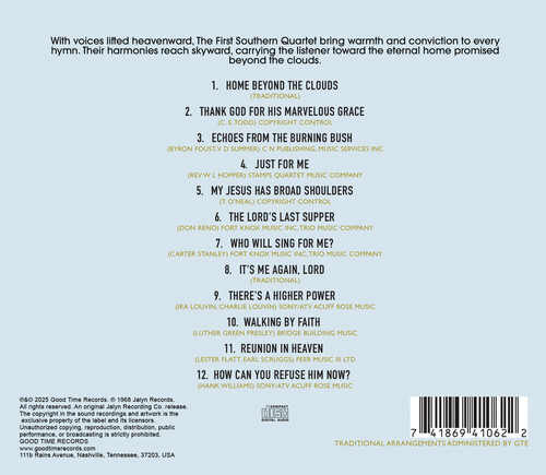 Jalyn Records is back! The Dayton, Ohio label from the creative mind of bluegrass legend Jack Lynch originally ran from the early '60s through the late '70s. Working out of his apartment on Brown Street, Lynch turned out a steady run of hard-driving bluegrass, country, and gospel sides cut by local pickers and big names alike, including Ralph Stanley and Don Reno. Decades on, these records are now lovingly remastered for modern ears and available on CD for the first time. Here, with voices lifted heavenward, The First Southern Quartet bring warmth and conviction to every hymn. Their harmonies reach skyward, carrying the listener toward the eternal home promised beyond the clouds.