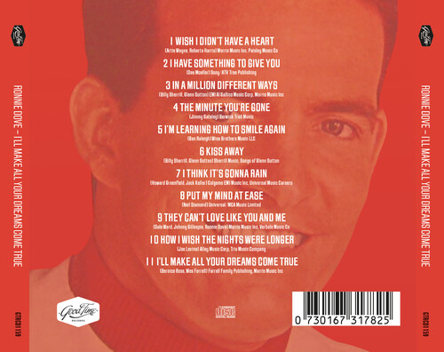 This album marks a notable shift in the career of worldwide vocal-pop sensation Ronnie Dove. With this being his third full-length release with Diamond Records, unlike his first two records, this one features mostly original compositions and guest appearances from big name writers, with one track even including an effort from a little known singer/songwriter called Neil Diamond. It also contains the future mega-hit singles 'I'll Make All Your Dreams Come True' and 'Kiss Away', which can still be heard across the airwaves today alongside other 60s pop favorites including 'How I Wish The Nights were Longer' and 'I'm Learning How to Smile Again'.