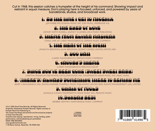 Cut in 1968, this session catches a trumpeter at the height of his command. Showing impact and restraint in equal measure, Don's playing here is focused, unforced, and powered by years of bandstands, studios, and broadcast work.
