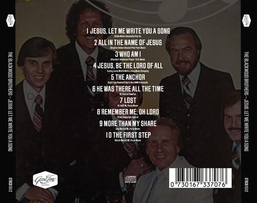 The Blackwood Brothers' "Jesus, Let Me Write You a Song" is a powerful collection of gospel hymns that showcases the group's close harmonies and soulful vocal delivery. With it's heartfelt and emotional performances, this album elevates timeless hymns to new heights, making each song a testament to the faith and devotion of the Blackwood Brothers. The arrangements are simple yet impactful, allowing the group's vocal prowess to shine and the subtle instrumentation to reinforce the emotional resonance of each song. From the opening track, "I Must Tell Jesus," to the soaring "God Will Take Care of You," this timeless album will touch the hearts of gospel music lovers everywhere, leaving a lasting message of faith, hope, and love that will continue to resonate with listeners long after the music has stopped.