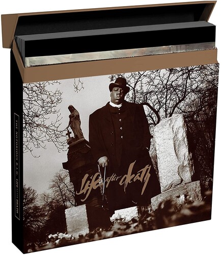 The Life After Death 25th Anniversary Super Deluxe Boxed Set consists of 8-LPs and a commemorative booklet featuring rare photos from the album cover shoot, liner notes by Sheldon Pearce, and exclusive reflections from members of the team who worked on the original album release. In addition to the original album, it includes the Hypnotize 12”, Mo Money Mo Problems 12”, Sky’s The Limit 12”, and Nasty Boy 12”.