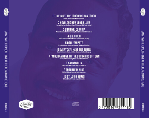 With a musical career spanning over five decades, the great Jimmy Witherspoon dipped his toe in many pools. Though crossing over into R&B, swing, gospel and jazz his roots however, were always in the blues. Putting that on display here for all to see, this extraordinary live recording captures the essence of Witherspoon's dynamic stage presence and his total mastery of the blues. Featuring performances from the legendary tenor saxophonist Ben Webster, baritonist Gerry Mulligan, and a rhythm section consisting of pianist Jimmy Rowles, bassist Leroy Vinnegar, and drummer Mel Lewis - the band were truly at the top of their game on this fateful night in 1960. The warmth of Spoon's voice croons effortlessly over the wonderful instrumental performances of his band to give unforgettable performances of classics including "Times Gettin´ Tougher Than Tough", "How Long Blues" and the traditional "CC Rider".