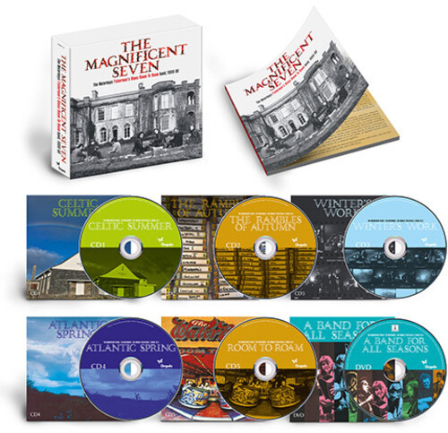 Limited five CD + DVD box set. The Magnificent Seven: The Waterboys Fisherman's Blue/Room To Roam band, 1989-90 is a new 145 track set and book which tells the story of the seven-piece line up from the Fisherman's Blues 1989 tour through to the release of the bands 5th album, Room to Roam in 1990. As well as the remastered Room To Roam album, this set contains 80+ previously unreleased tracks over 4CDs packed from demos, unreleased studio tracks, live and informal jams/sessions. The DVD contains two complete 1989 audience films of Glastonbury Festival and Milan, home movies and professional footage at Spiddal House during the making of Room To Roam, plus film shots of The Waterboys visits to Spiddal in 2010 and 2012. The 54-page booklet contains track notes by all band members and previously unseen photos.