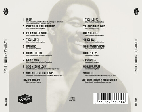 Rising to fame in the late 1950s with his infectious brand of rock and roll music, Lloyd Price was always characterised by his distinctive voice, driving rhythm, and catchy melodies. An extremely popular figure in the early days of rock and roll and a tireless performer throughout his long and illustrious career, he established himself as one of the most influential figures of his time and has carved out a legacy that will have a lasting impact on the evolution of rock and roll and R&B music for many years to come. Price's music drew inspiration from many styles of African American music, such as blues, gospel, and jazz, which were masterfully blended with his own rock and roll sound to create a collection of unique and dynamic songs which are collected here on tracks including 'Marianne', 'No Limit to Love' and 'Lawdy Miss Clawdy'.