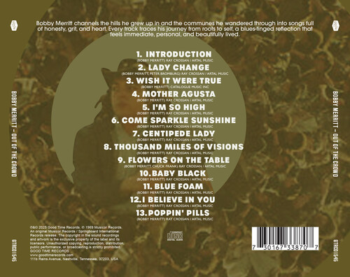 Originally recorded in 1969 at Groove Sound Studios in New York City and produced by Ray Crossan, West Virgiania born singer/songwriter Bobby Merritt brings you an album of Rock & Roll, Soul and Funk hits including 'Wish It Were True', 'Blue Foam' and 'Come Sparkle Sunshine'. CD Tracklist: Introduction / Lady Change / Wish It Were True / Mother Agusta / I'm So High / Come Sparkle Sunshine / Centipede Lady / Thousand Miles of Visions / Flowers on the Table / Baby Black / Blue Foam / I Believe in You / Poppin' Pills.