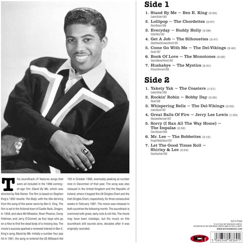 This soundtrack LP features songs that were all included in the 1986 coming-of-age film Stand By Me, which was directed by Rob Reiner. The film is based on Stephen King's novella The Body, with the title deriving from the song of the same name by Ben E. King. The film is set in the fictional town of Castle Rock, Oregon, in 1959, and stars Wil Wheaton, River Phoenix, Corey Feldman, and Jerry O'Connell, as four boys who go on a hike to find the dead body of a missing boy. The movie's success sparked a renewed interest in Ben E. King's song "Stand by Me, with the song re-entering the US Billboard Top 10 chart in 1986. The soundtrack is crammed with great, early rock & roll hits. The movie may have been nostalgic, but the music on this soundtrack still sounds alive, decades after it was originally recorded.
