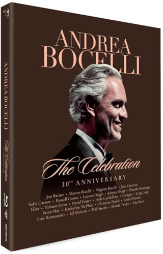 Filmed at the Teatro del Silenzio (Theatre of Silence) in Lajatico over 3 nights in 2024 and marking his 30th year as an artist, this once-in-a-lifetime event sees classical star Andrea Bocelli appear in his home of Tuscany with a star-studded lineup of special guests performing songs that have been the pillars of his career. This 2-disc Blu-ray package features two shows - "The Celebration" and "30 Years of Musical Inspiration" and over 4 and a half hours of performances. With incredible staging, including a stunning sundial centerpiece in the middle of a lake, and 500 drones which lift into the sky in 3 breathtaking moments, Bocelli is joined by an 80-piece orchestra, a cast of over 200 musicians and family and friends including Ed Sheeran, Jon Batiste, Shania Twain, Brian May and more. It's a night that transforms both the landscape and beautiful Tuscan sky into something totally spectacular. The result: a mesmerizing and truly unforgettable concert. Digipak with 20-page booklet.