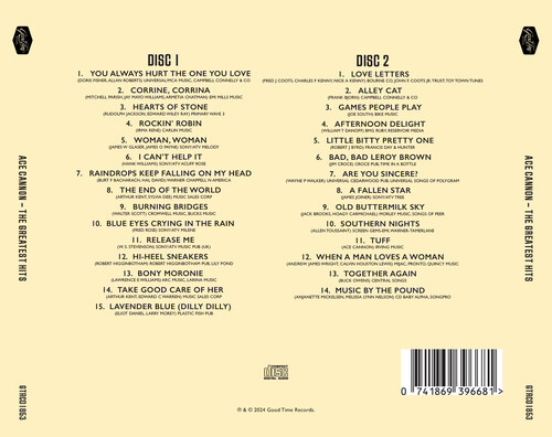 2 Disc Set. Dive into the timeless soundscape of jazz legend Ace Cannon with "The Greatest Hits". Bringing together the most iconic tracks from Cannon's illustrious career, this album showcases Cannon's unparalleled mastery of the saxophone. From smooth ballads to lively up-tempo numbers, each track reflects his innovative spirit and enduring influence on the jazz genre. Whether you're a long-time fan or new to his music, this compilation is the perfect way to rediscover the genius of a true jazz virtuoso and experience the magic of Ace Cannon's soulful melodies and unparalleled performances with tracks including 'Blue Eyes Crying in the Rain', 'Games People Play' and 'When a Man Loves a Woman'.