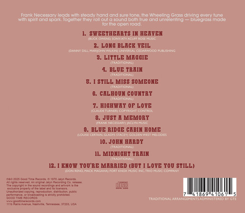 Jalyn Records is back! The Dayton, Ohio label from the creative mind of bluegrass legend Jack Lynch originally ran from the early '60s through the late '70s. Working out of his apartment on Brown Street, Lynch turned out a steady run of hard-driving bluegrass, country, and gospel sides cut by local pickers and big names alike, including Ralph Stanley and Don Reno. Decades on, these records are now lovingly remastered for modern ears and available on CD for the first time. Here, Frank Necessary leads with steady hand and sure tone, the Wheeling Grass driving every tune with spirit and spark. Together they roll out a sound both true and unrelenting - bluegrass made for the open road.