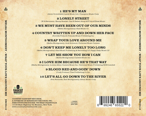 Country Harvest Records unveils the soulful sounds of Melba Montgomery with the reissue of "Wrap Your Love Around Me." A formidable force in country music during the 1960s and 1970s, Montgomery's emotive vocals and poignant storytelling set her apart. Originally released in [insert original release year], this album captures Montgomery's ability to convey love and longing with unparalleled sincerity. Country Harvest Records' remastering accentuates the timeless beauty of Montgomery's performances, offering a renewed appreciation for her contribution to the rich tapestry of country music.